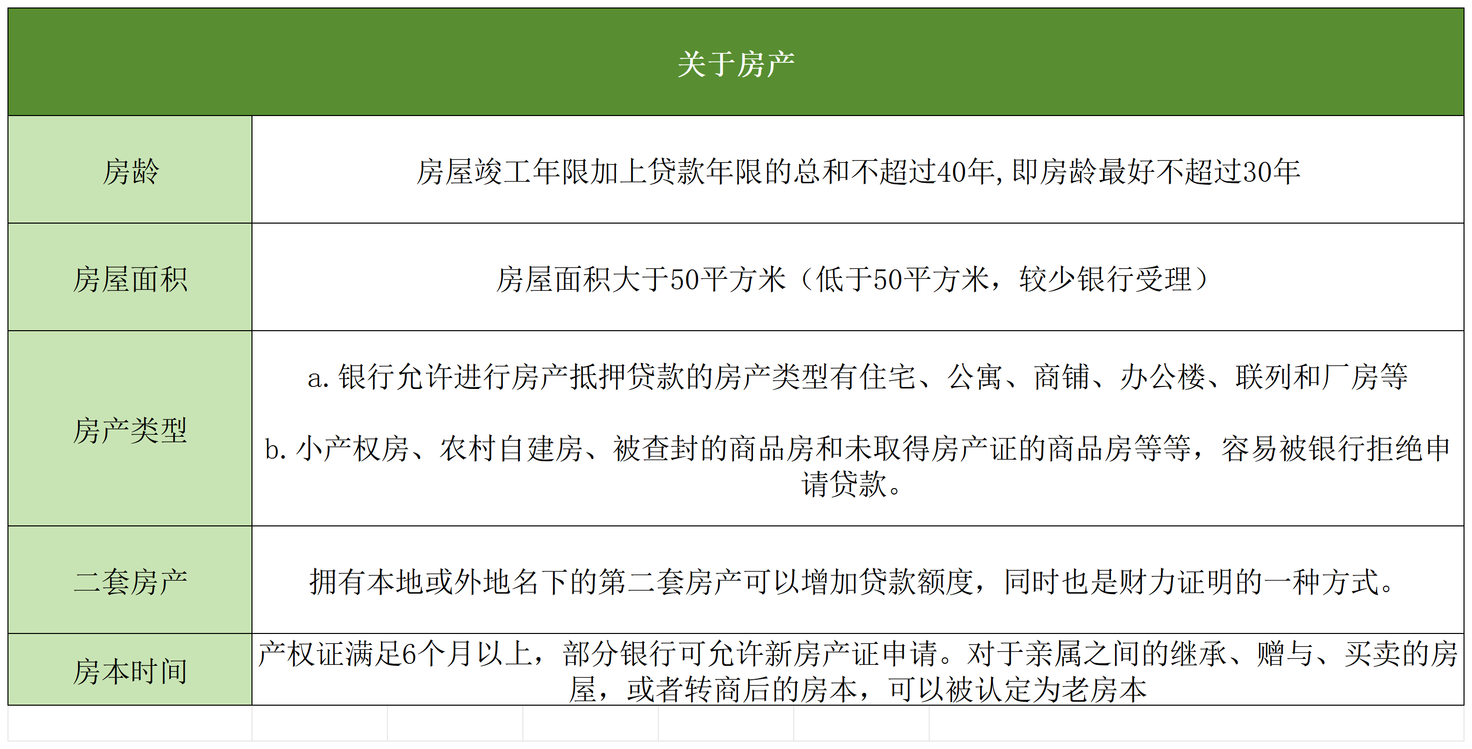 (3)房產(chǎn)產(chǎn)權(quán)明晰,未設(shè)其他抵押,且符合國家上市交易條件,能在房地產(chǎn)市場自由流通等——滿足這些條件的房產(chǎn)易被銀行接受,是銀行偏愛的房產(chǎn)特點(diǎn)。